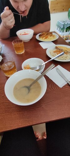 Искали в дороге, где пообедать и увидели это кафе. Борщ супер, котлета с пюре, салат, компот - все как дома. Девушка на кассе тоже замечательная. Спасибо 😍😍😍Обязательно заедем еще